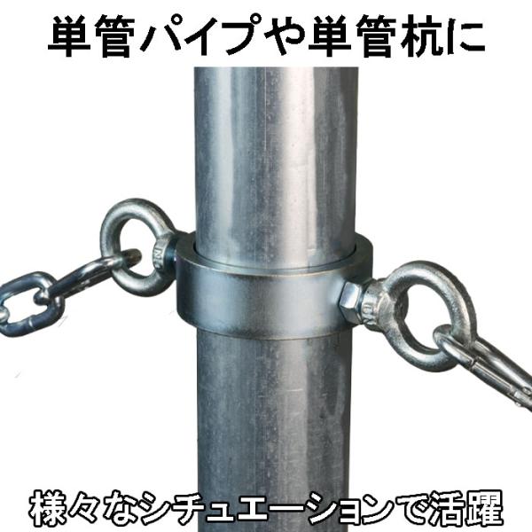 単管パイプや単管杭にロープやチェーンが張れる単管金具!取付簡単な単管パイプジョイント。