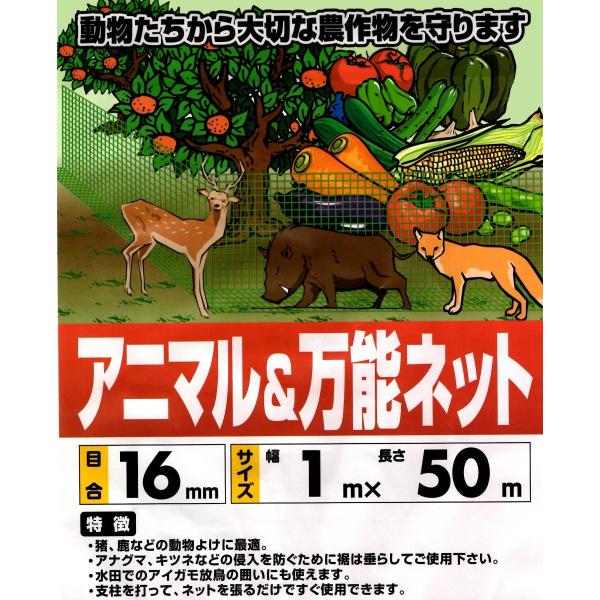 アニマルネット 16mm目 1m×50m 防獣ネット 侵入防止ネット 動物の侵入防止ネット 害獣ネット 農業ネット グリーンネット