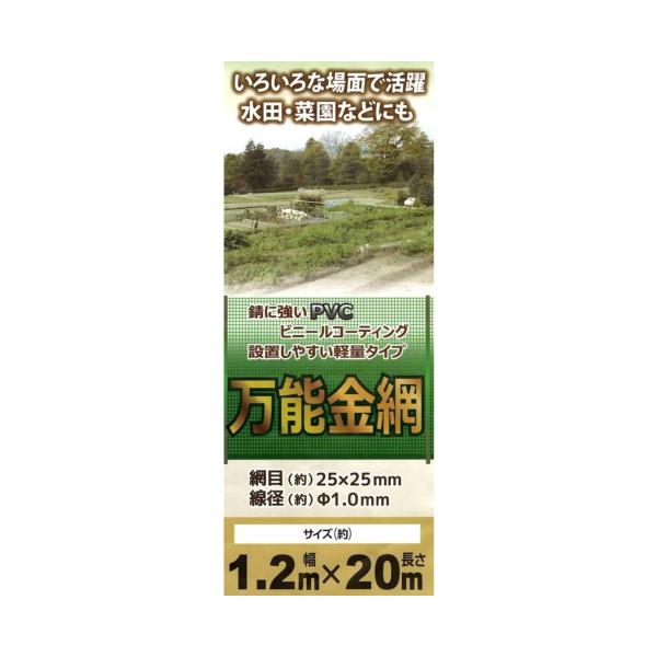 万能金網 25mm角目 1.2m×長さ20m グリーン アニマルフェンス 防獣金網 動物よけフェンス 緑ビニール金網