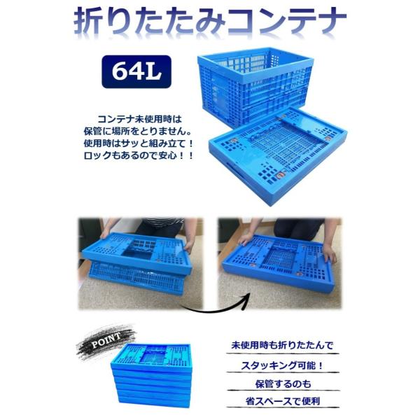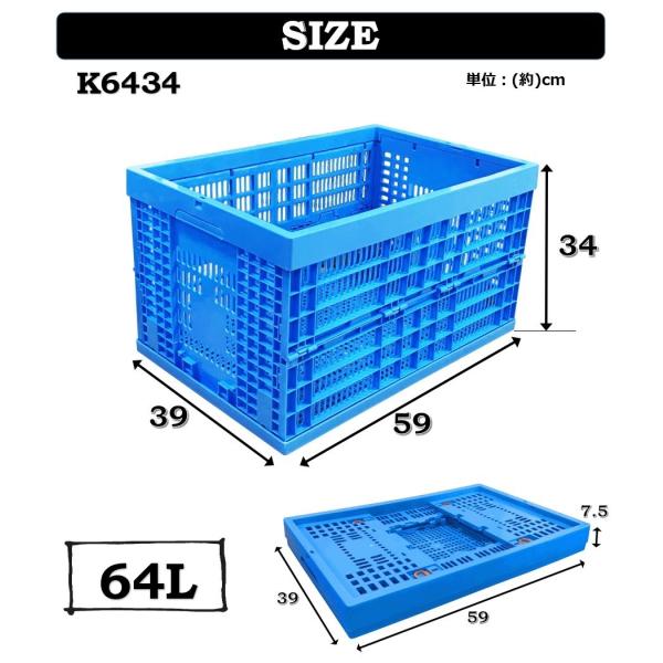 K6434 折りたたみコンテナ 折りコン オリコン 収納ボックス コンテナボックス 業務用 プラコンテナ PP製 通気メッシュ スタッキング 64L