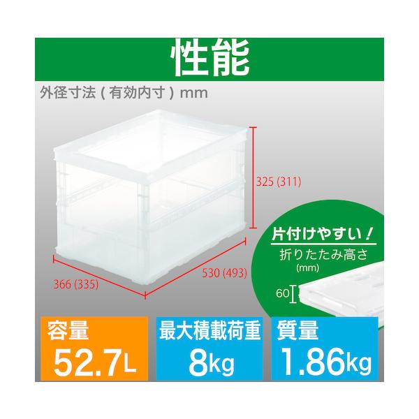 TRUSCO オリコン 薄型折りたたみコンテナ スケルコン 50L 透明 透明 ▼344-9530 TSK-O50B TM 1個