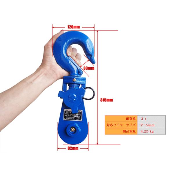 スナッチブロック 3トン ブロック滑車 フック式 スイベルタイプ レッカー車 積載車 セルフローダー トラック レッカー用品 Snatch Block 3t