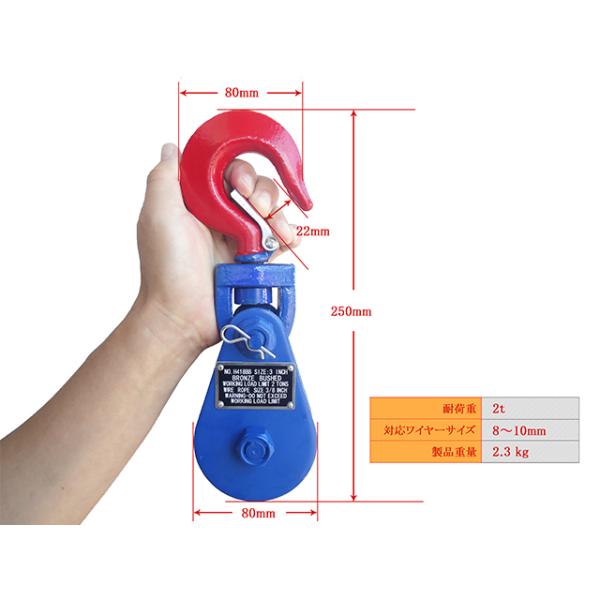 スナッチブロック 2トン ブロック滑車 フック式 スイベルタイプ レッカー車 積載車 セルフローダー トラック レッカー用品 Snatch Block 2t