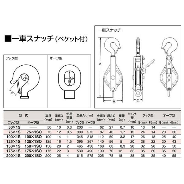 フック型 強力型滑車 一車スナッチ(ベケット付) 150×1S 車径150mm スリーエッチ HHH 代引不可