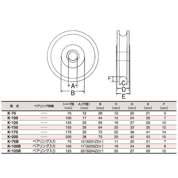 強力型滑車 シーブ(ベアリングなし) K-75 シーブ径75mm スリーエッチ HHH 代引不可