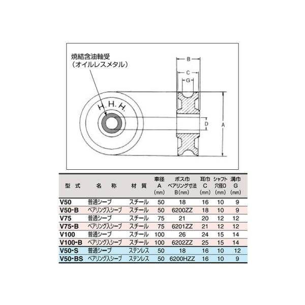 シンプル型ブロック 普通シーブ スチール V50 シーブ径50mm スリーエッチ HHH 代引不可
