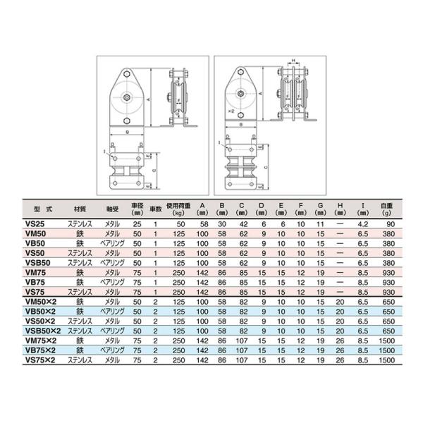 固定滑車たて型一体型(丈夫な標準タイプ) ステンレス 軸受メタル VS25 車径25mm スリーエッチ HHH 代引不可
