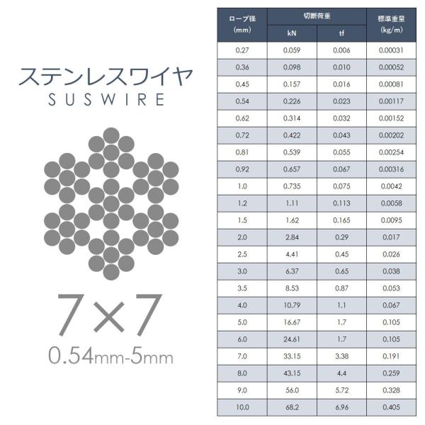 ステンレスワイヤー 7x7 5mm カット販売 SUS304