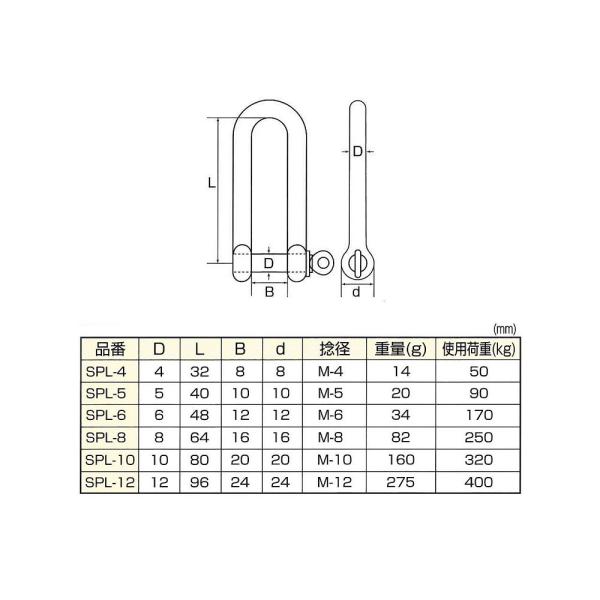 ステンレス ロングネジ シャックル 12mm S362 SPL-12