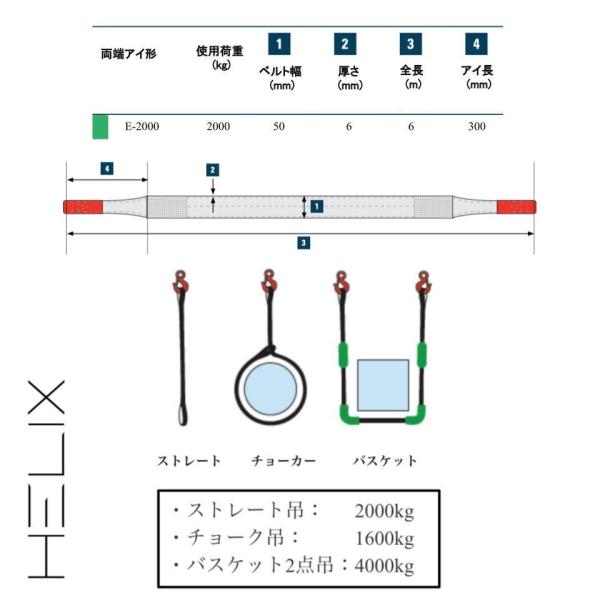 【2本セット】HELIX スリングベルト 6m 幅50mm 使用荷重2000kg 吊上げ 牽引 玉掛け 2T 日本語仕様書付