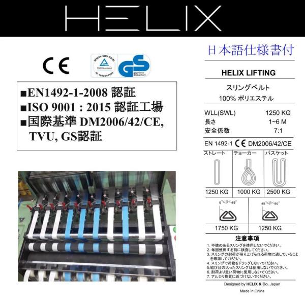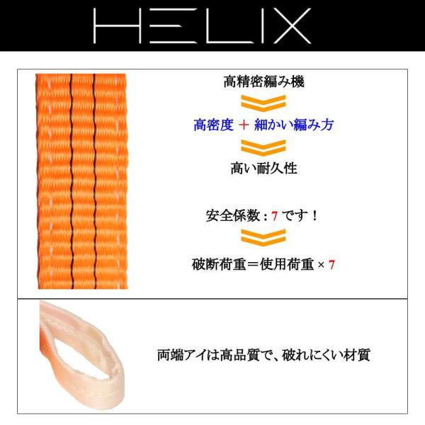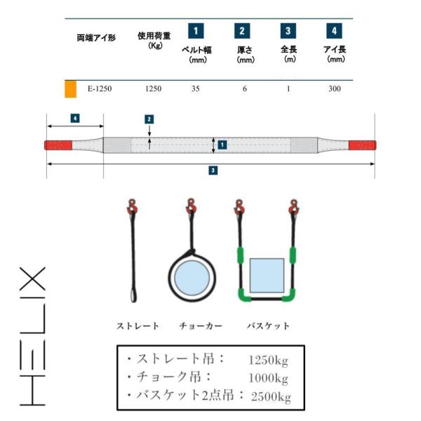【2本セット】HELIX スリングベルト 1m 幅35mm 使用荷重1250kg ナイロンスリング 吊上げ 牽引 玉掛け 1.25T ベルトスリング 日本語仕様書付