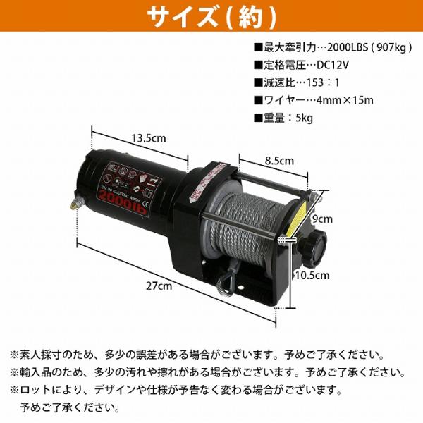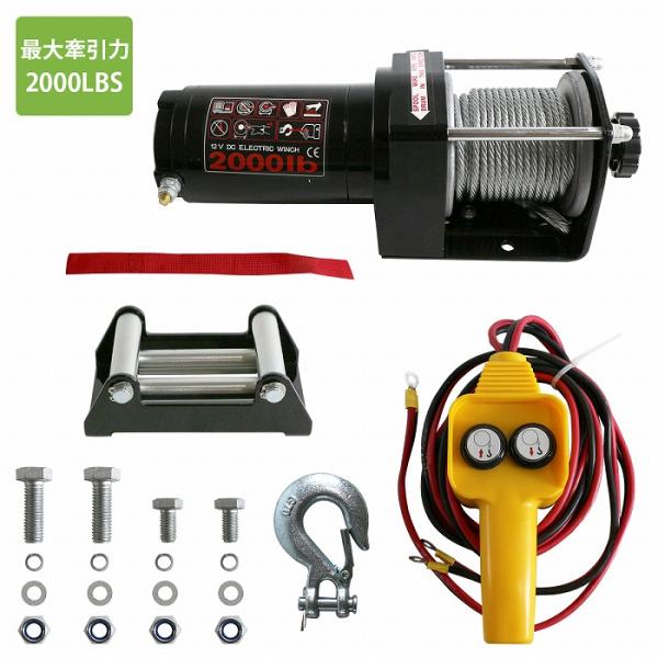 電動ウインチ 2000LBS (907KG)パワフル&防水仕様 12V マグネットモータ式 静音 ジムニー 軽トラック オフロード 林道走行の必需品