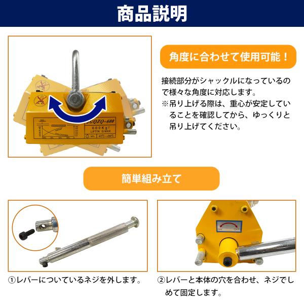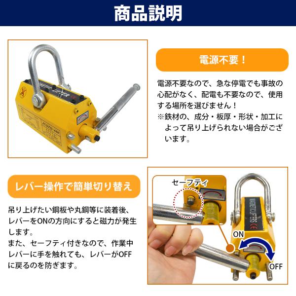 『600KG』永久磁石 リフティングマグネット リフマグ ON/OFF レバー式 マグネットウインチ 鉄 鉄板 運搬 玉掛け 昇降 吊上げ