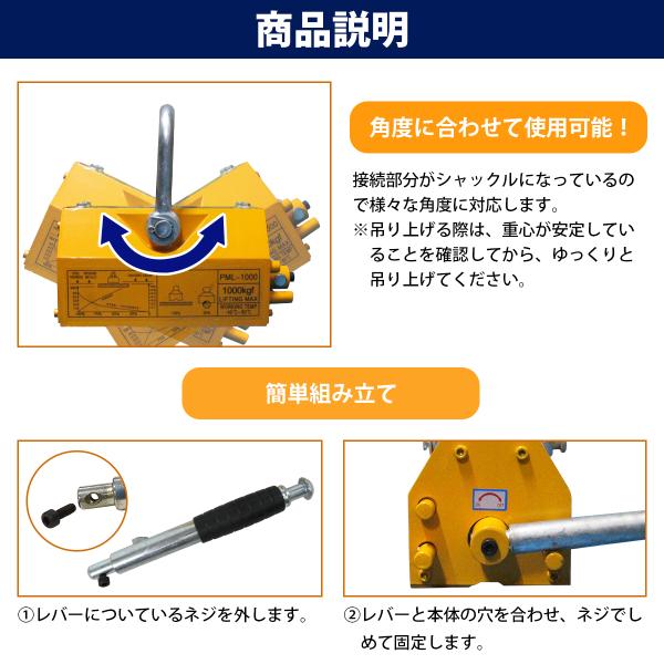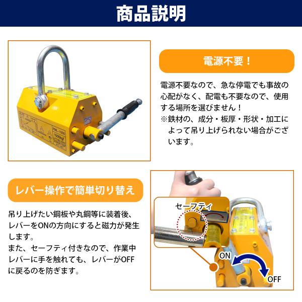 『1000KG』永久磁石 リフティングマグネット リフマグ ON/OFFレバー式 マグネット ウインチ 鉄 鉄板 運搬 玉掛け 吊上げ 1t