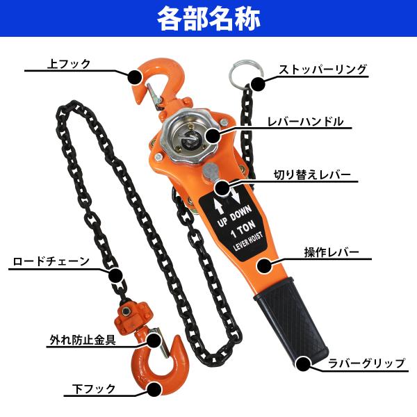 1.0t レバーホイスト 荷締機 レバー式 チェーン ブロック ガチャ ガッチャ レバー チェン ブロック 1000KG 1t ホイスト