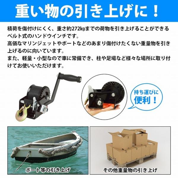 ベルト式 600LBS 手動 ハンドウインチ ナイロン 牽引 移動 バイク ジェットスキー ボート 手巻き 重量物 吊り上げ 積載 作業