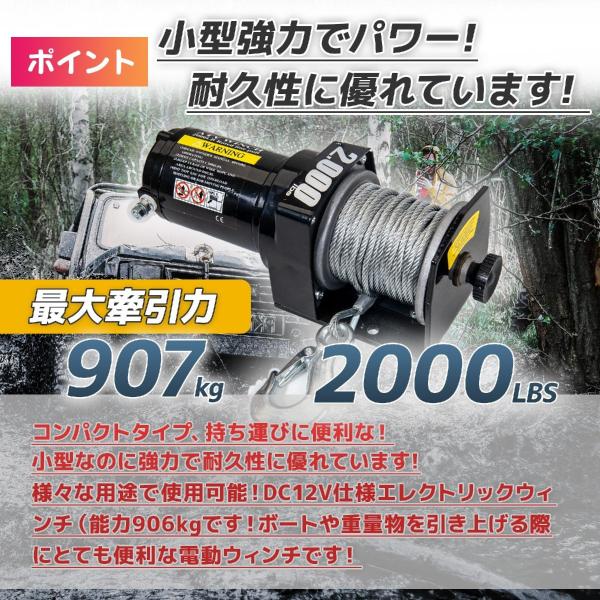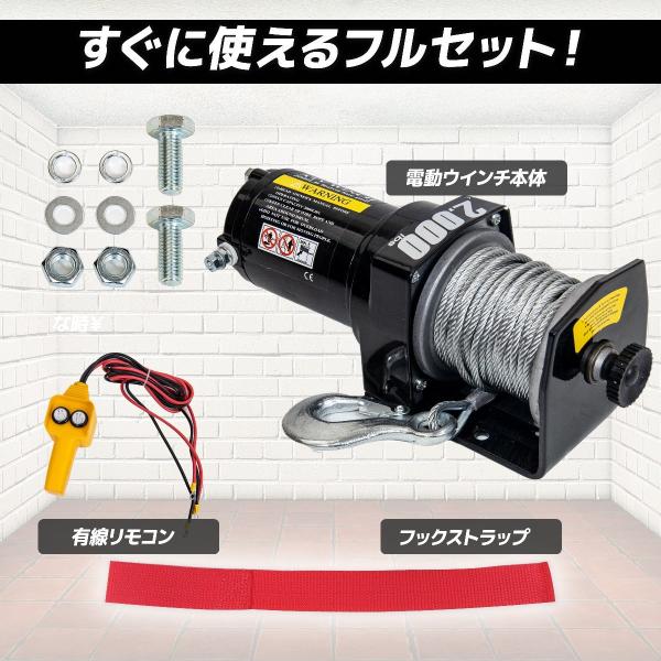 DC12V 電動ウインチ 最大牽引907kg( 2000LBS) 電動ウインチ 引き上げ機 けん引 防水仕様