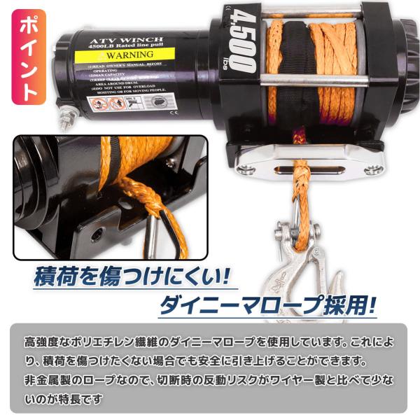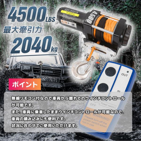 車載用ウインチ 電動ウインチ ロープタイプ リモコン付き DC12V 4500LBS 2041kg ロープ青色