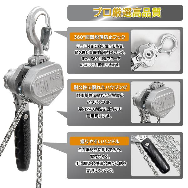 お得な2個セット アルミ製 ミニレバーホイスト 250kg 超軽量 コンパクト チェーンブロック ガッチャ 荷締機 日本語説明書、収納袋付