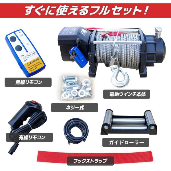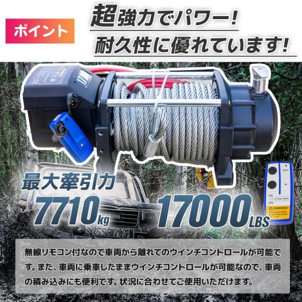 ビッグセール 車載用ウインチ 電動ウインチ リモコン付き DC12V・24V選択 最大牽引 17000LBS(約7650kg)
