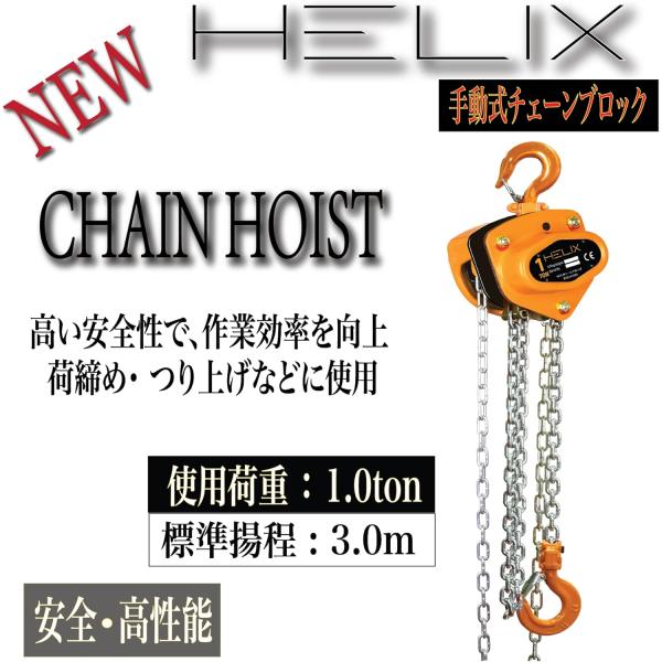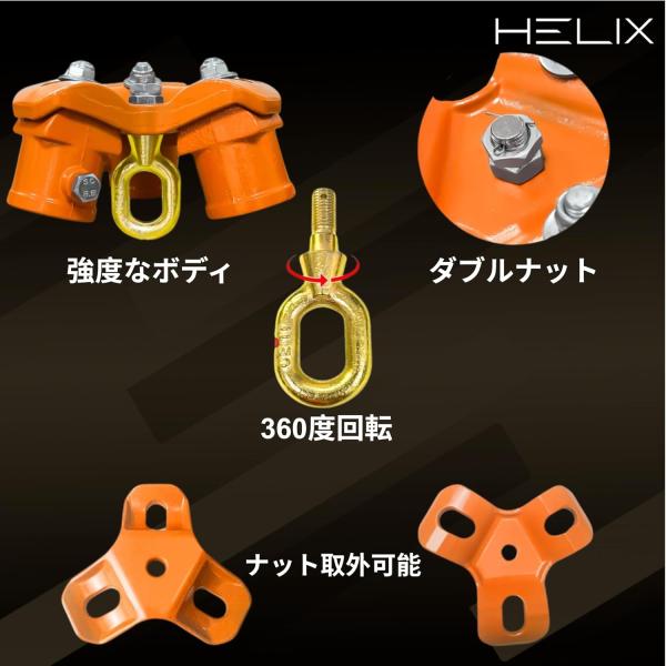 HELIX 抜根作業セット チェーンブロック・三脚ヘッド・ベース・スリングベルト [三脚ヘッド1ton チェーンブロック 1ton 3m スリングベルト 50mm 2m 2本セット]