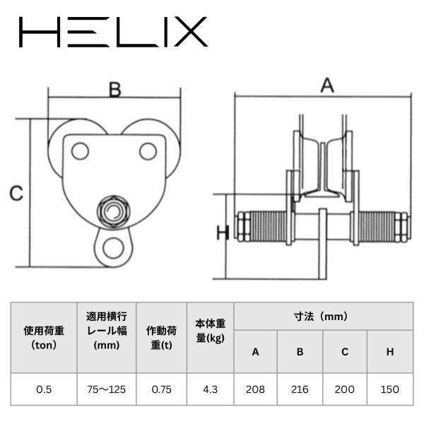 HELIX 手動用プレントロリー 0.5トン チェーンブロック用プレントロリー 500kg