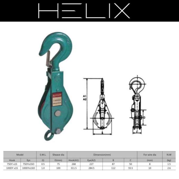 HELIX 強力型滑車 一車スナッチ 1ton 1トン スナッチブロック 1000kg ブロック滑車 フック式 ワイヤーロープ
