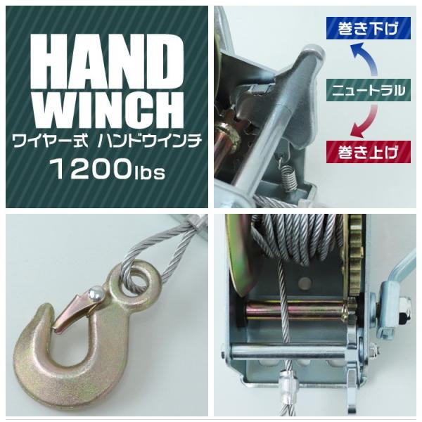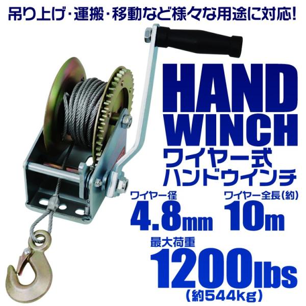 ハンドウィンチ ワイヤー式 手動ウィンチ 手動 手巻きウィンチ 1200LBS 544kg ウインチ WEIMALL