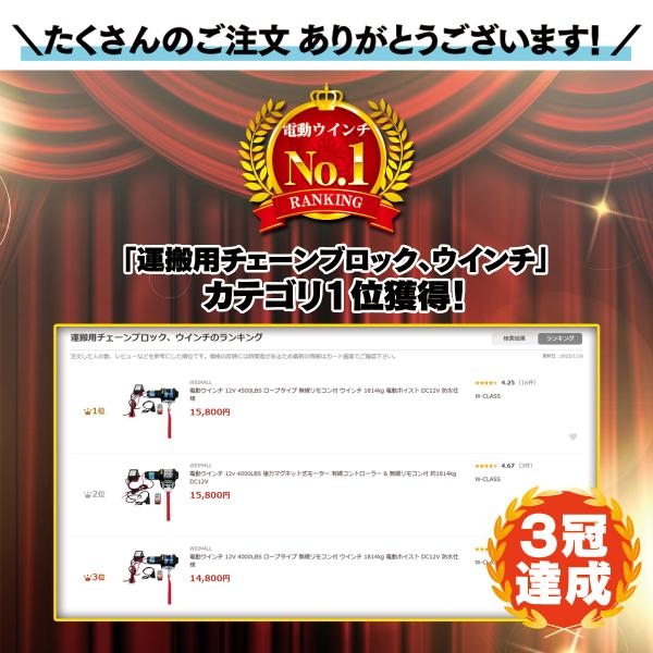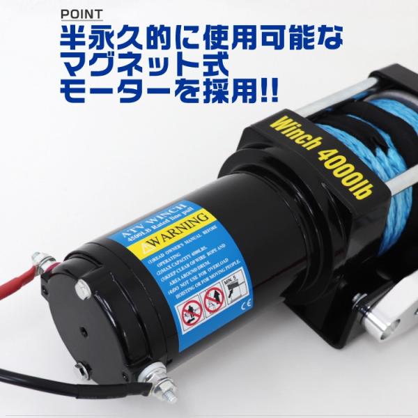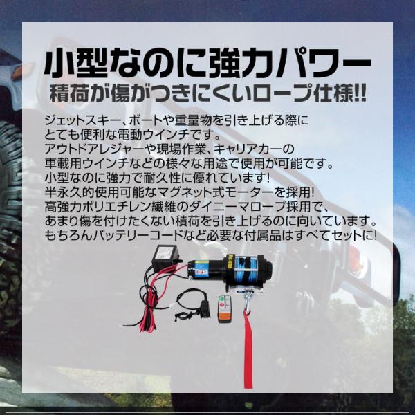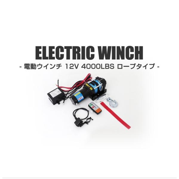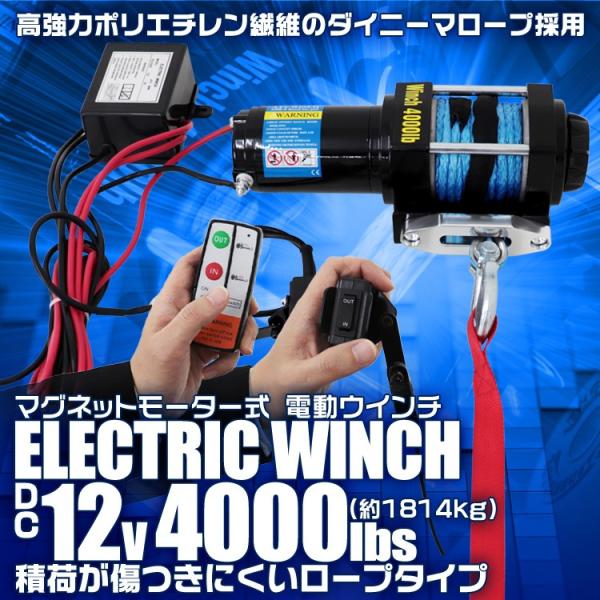 電動ウインチ 12V 4000LBS ロープタイプ 無線リモコン付 ウインチ 1814kg 電動ホイスト DC12V 防水仕様 チェーンブロック
