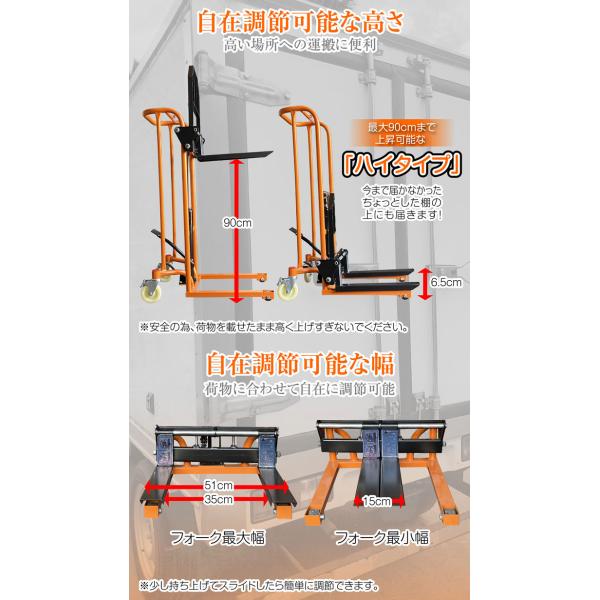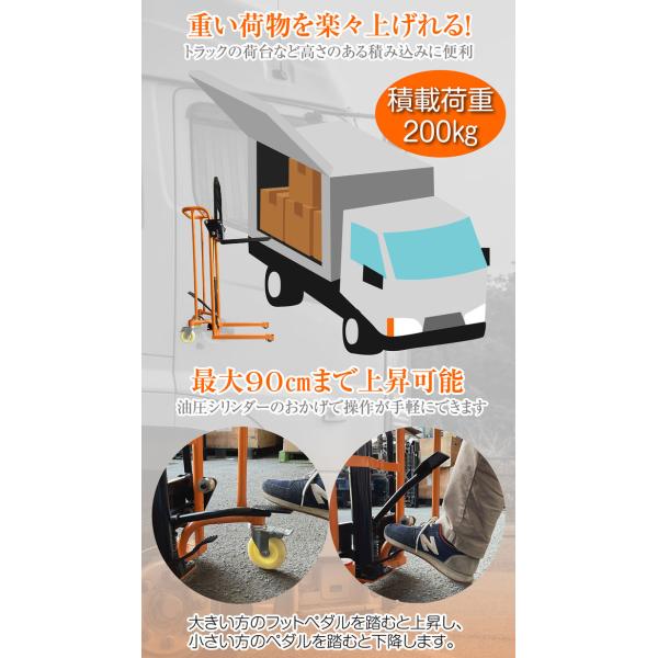 ハンドフォークリフト 200kg 最高位900mm フォーク長さ460mm 幅最大510mm 油圧式 台車 ハンドリフト 低床