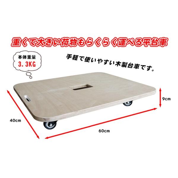 木製 平台車 60×40cm 耐荷重100Kg 静音 ベアリング 式 自在 キャスター 作業 板 運搬 台車 爆買