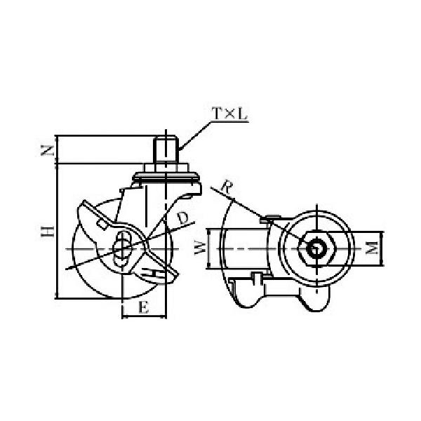 ユーエイ ねじ込み式 自在 キャスター ナイロン 車輪径40mm ストッパー付き Lタイプ LT-S型 ネジ寸法M12×14ピッチ1.25 ▼158-8039 LT-40NS-M12-14 1個