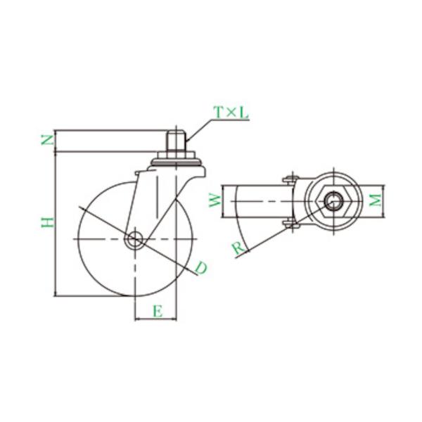 ユーエイ ねじ込み式 自在 キャスター ゴム 車輪径50mm Eタイプ ET型 ネジ寸法M12×35ピッチ1.75 ▼809-2919 ET-50R-M12-35 1個