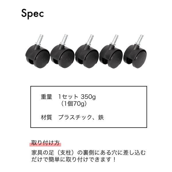 キャスター5個組 KINCOオープンラックシリーズに対応する別売りキャスター 白 黒 ホワイト ブラック