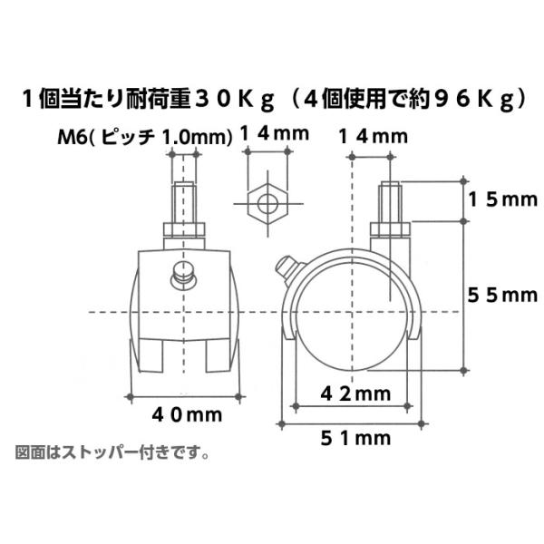 キャスター 簡単 双輪キャスター 40mm ブラック ストッパー無 ネジM6×15mm DIY便利 交換 キャスター車輪
