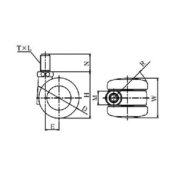 ユーエイ ねじ込み式 自在 双輪キャスター ナイロン 車輪径60mm OTHERS P型 ネジ寸法M12×22ピッチ1.75 ▼277-8980 P-60T 1個