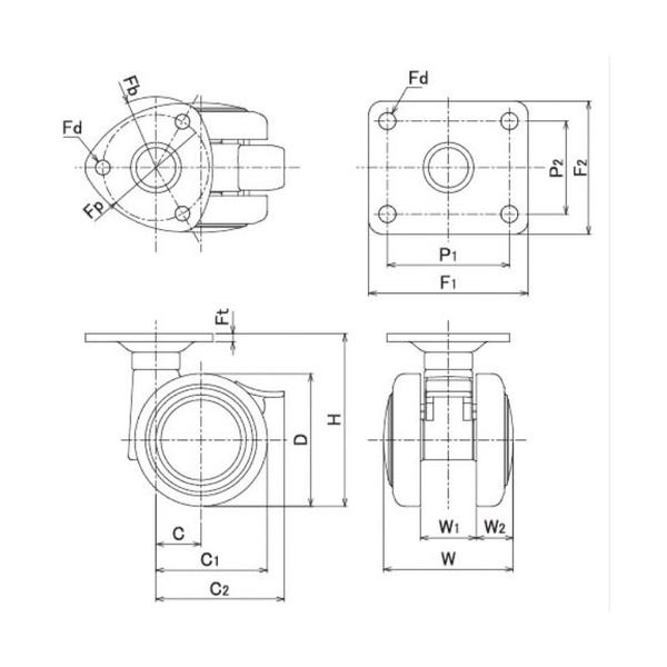 東海 プレート式双輪キャスター(エラストマー車) 60MMストッパー付き 黒色 ▼355-3942 TE60JS (プレートストッパーツキ) 1個