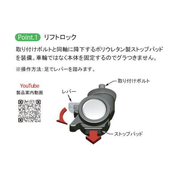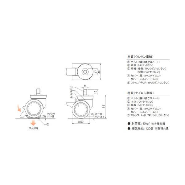プラパート リフトロックキャスター ナイロン車 φ50 M10 シルバー ストッパー付 高さ調整可 ▼402-7300 K100-50-S10S 1個