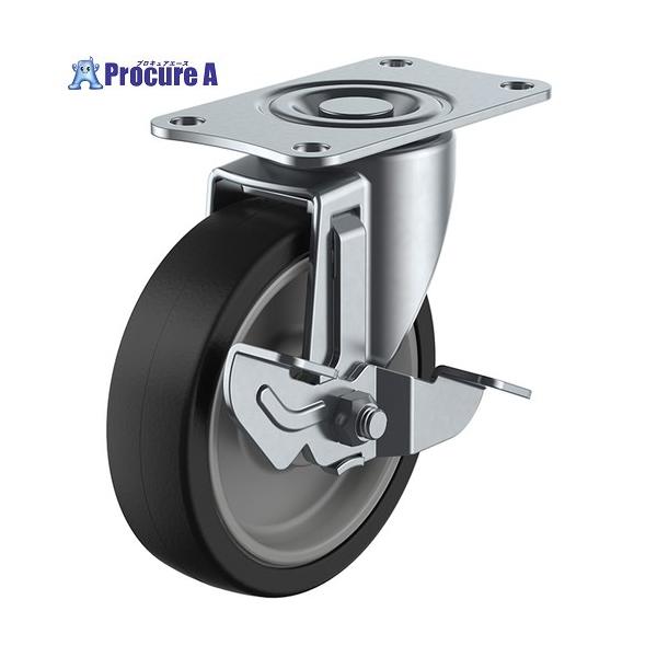 ユーエイ プレート式 自在 キャスター ゴム 車輪径75mm ストッパー付き SILENTタイプ SFHG-DS型 取付寸法55×42 ■▼158-6508 SFHG-75NRBDS 1個