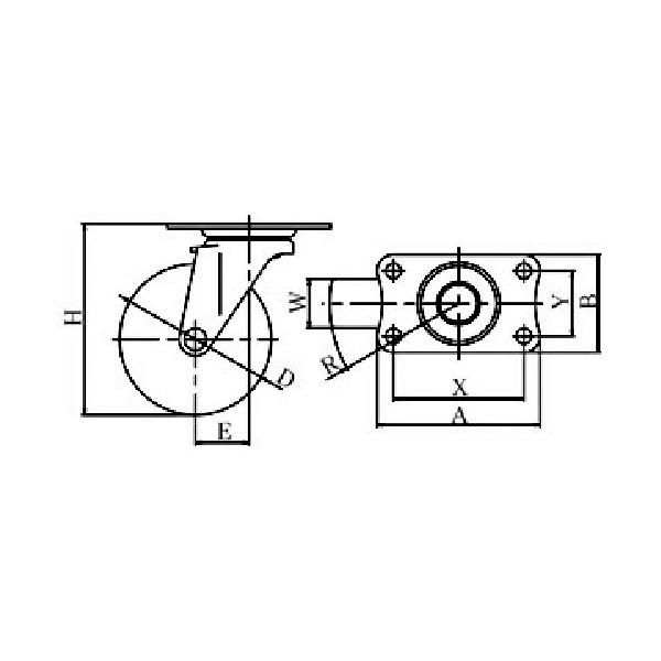 ユーエイ E-100RHE プレート式 自在 キャスター 導電ゴム 車輪径100mm Eタイプ E型 取付寸法82×40 (1個)