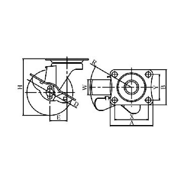 ユーエイ プレート式 自在 キャスター 導電ゴム 車輪径75mm ストッパー付き Sタイプ SG-S型 取付寸法55×42 ▼364-0439 SG-75RHES 1個
