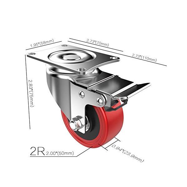 COOWOO 2インチ キャスター 4個セット 車輪 ブレーキ付き 高耐久性 単個耐荷重100kg 360度回転 静音 ミュートシリーズDIY家