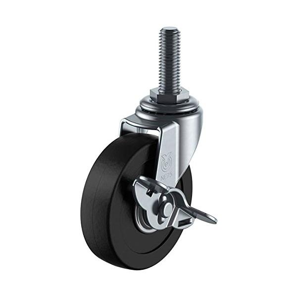ユーエイキャスター:Lシリーズ LT-S型 自在キャスター ストッパー付 ゴム車 車輪径φ75 ネジ寸UNF1/2×14 山数 20山 メーカー