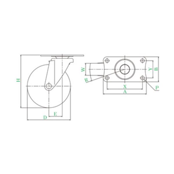 ユーエイ プレート式 自在 キャスター エラストマー 車輪径75mm SILENTタイプ EF型 取付寸法56×28 ▼809-3570 EF-75ELSB 1個