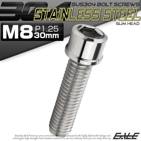 SUS304 キャップボルト M8×30mm P1.25 六角穴付きボルト スリムヘッド シルバー ステンレス製 TB0214