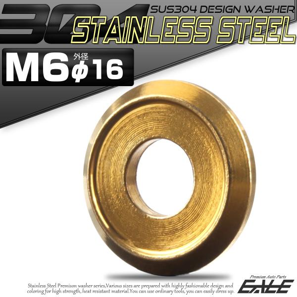 SUS304 M6 デザインワッシャー 外径16mm ボルト座面枠付 フジツボ型 ステンレス製 ゴールド TF0017