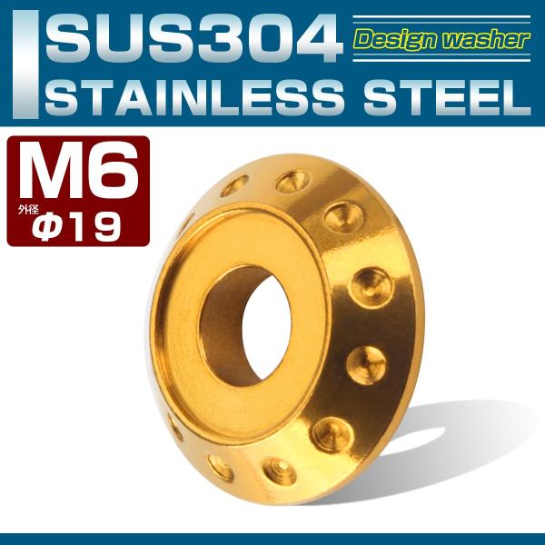 M6 ボルト座面枠付 ワッシャー 外径19mm ホール加工 ボルトリング SUS304ステンレス製 フジツボ デザインワッシャー ゴールド TF0173