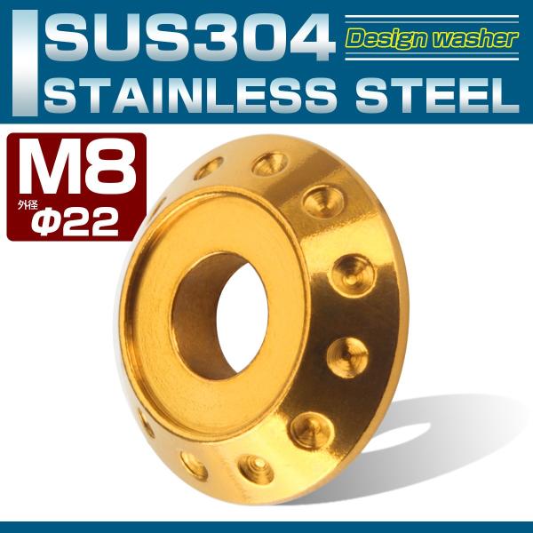 M8 ボルト座面枠付 ワッシャー 外径22mm ホール加工 ボルトリング SUS304ステンレス製 フジツボ デザインワッシャー ゴールド TF0174