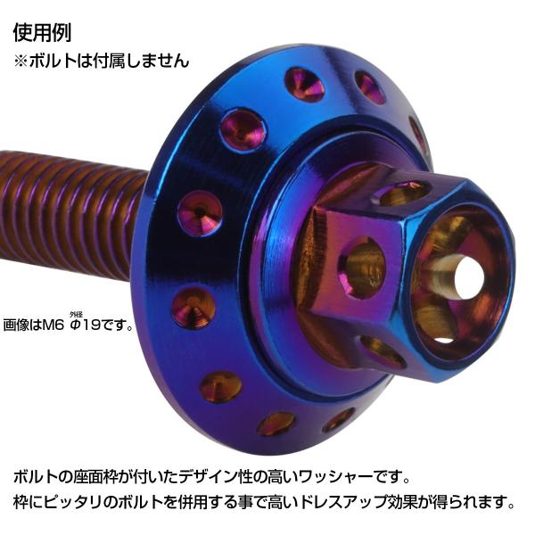 M6 ボルト座面枠付 ワッシャー 外径19mm ホール加工 ボルトリング SUS304ステンレス製 フジツボ デザインワッシャー 焼きチタン TF0175