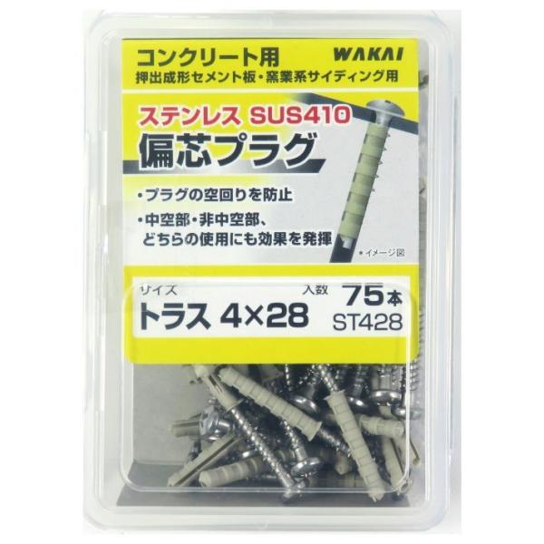 WAKAI ステンレス 偏芯プラグ トラス 4×28 75本入【適合ドリル:4.0mm コンクリート サイディング ビス コンビス プラグ 中空 若井産業 ワカイ】